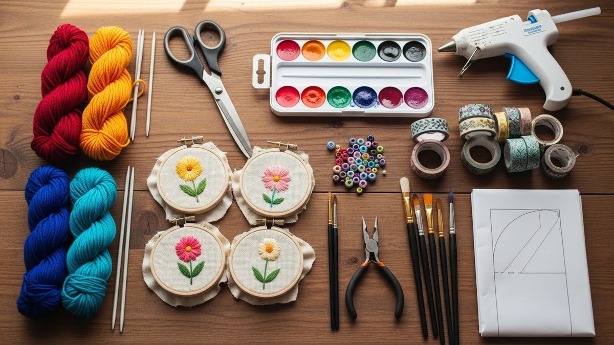初期費用を抑えたい場合は、手持ちの道具や身近な素材で始められるジャンルが便利です。ペーパークラフト、ビーズアクセサリー、刺繍は最小限の道具で始められることが多く、材料も安価で揃います。