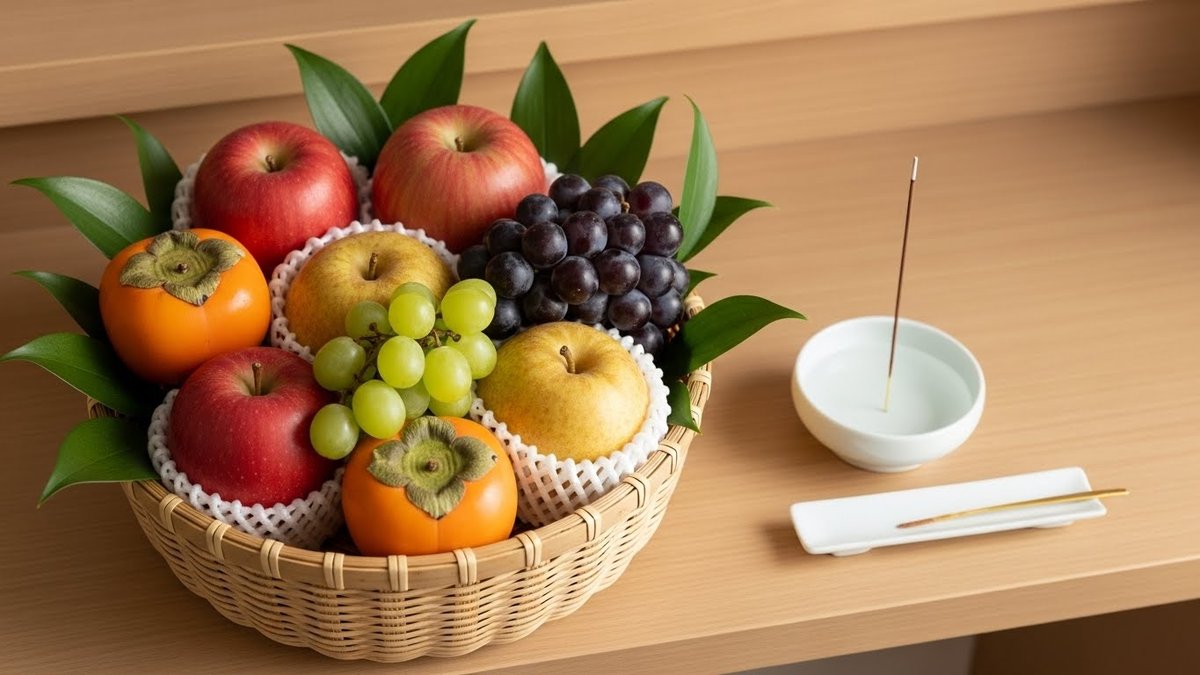 四十九日のお供えは日持ちと見た目のバランスが大切です。籠盛りは扱いやすく安心感があり、果物の種類は季節や仏壇の広さ、宗派の慣習を考えて選んでください。