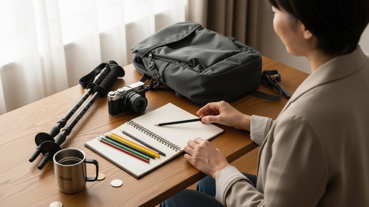 服や小物に趣味を感じさせるアイテムを取り入れると自然なアピールになります。スポーティーな鞄やカメラストラップ、手作りアクセサリーなどが目を引きます。